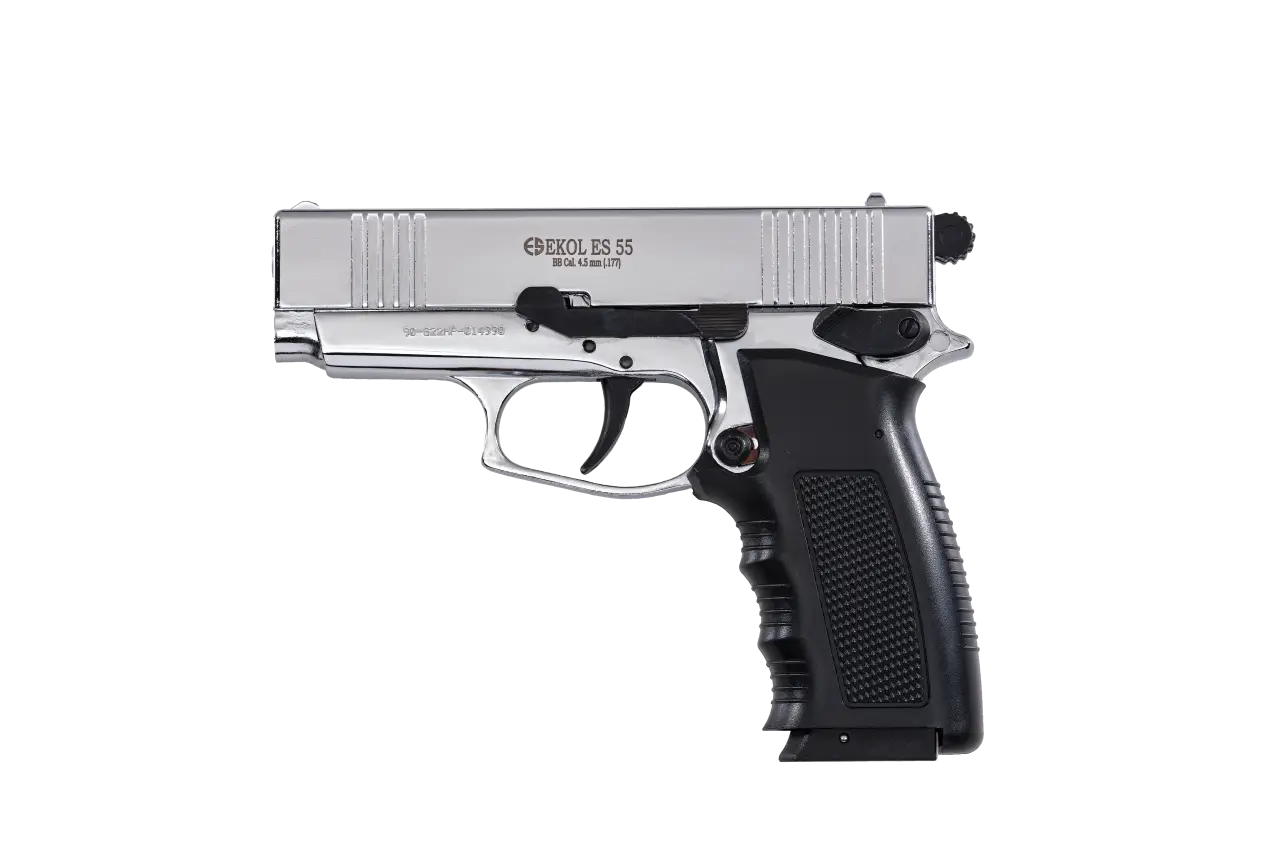 Пневматичний пістолет EKOL ES55 4,5 мм — надійна модель для тренувальної та розважальної стрільби. Зручна ергономіка рукоятки, збалансована вага та акуратне складання допомагають впевнено отримати приціл і повторювати рівні постріли. Класичний дизайн і невибагливе обслуговування роботи ES55 вдалим вибором для регулярної практики в тирі чи на природі (з дотриманням правил безпеки). Можливі варіанти покриття black / fume (залежно від наявності).