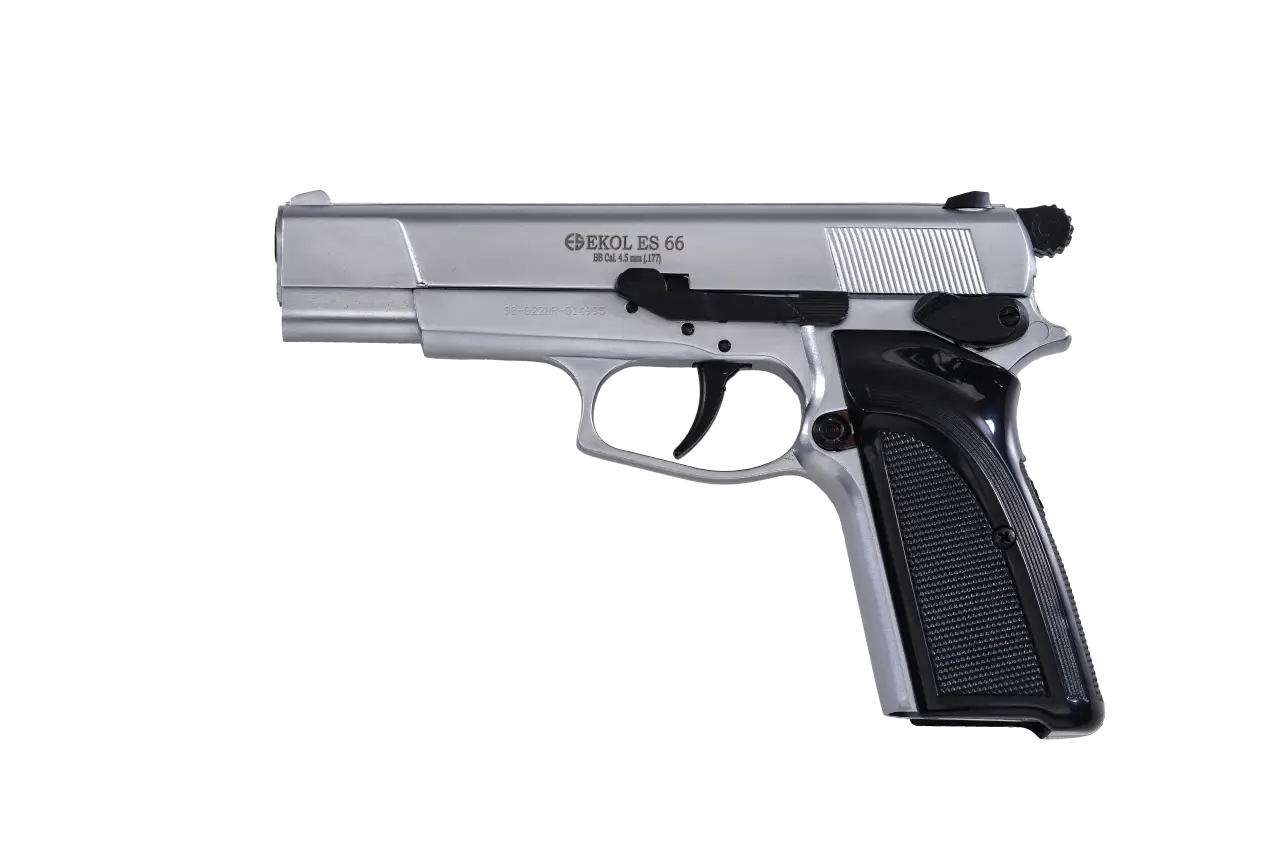 Пневматичний пістолет EKOL ES66 4,5 мм — зручна та надійна модель для тренувальної та розважальної стрільби. Акуратне складання, приємний хват і передбачуваний спуск допомагають впевнено тримати приціл і повторювати рівні постріли. Класичний дизайн та невибагливе обслуговування виконують ES66 у регулярному виборі для практики в тирі чи на природі (з дотриманням правил безпеки). Можливі варіанти покриття black / fume (залежно від наявності).